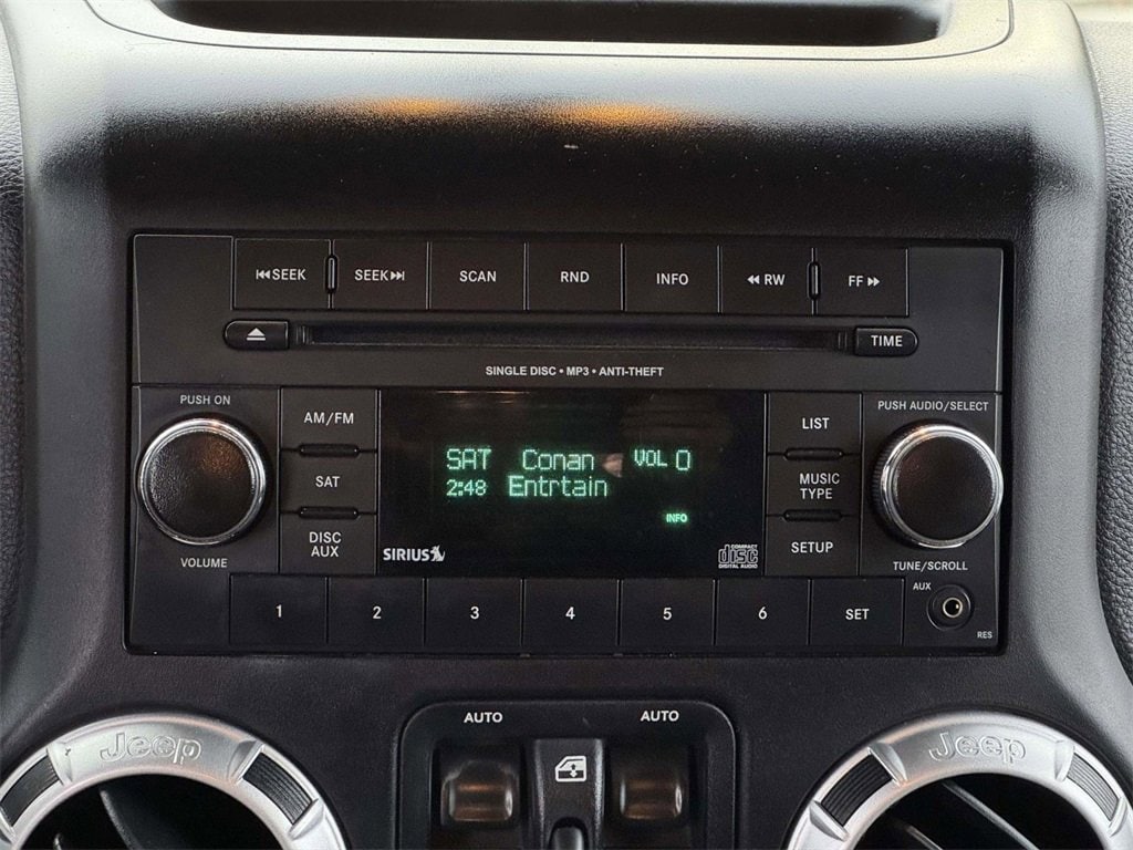 APPLY FOR FINANCING ONLINE, ONLINE APPRAISALS AVAILABLE, 3.21 Rear Axle Ratio, Front fog lights, Fully automatic headlights, Quick Order Package 24G, 18" x 7.5" Polished Satin Carbon Wheels, 4-Wheel Disc Brakes, 8 Speakers, ABS brakes, Air Conditioning, Alloy wheels, AM/FM radio, Audio Jack Input for Mobile Devices, Auto-dimming Rear-View mirror, Brake assist, CD player, Cloth Bucket Seats, Compass, Driver door bin, Driver vanity mirror, Dual front impact airbags, Electronic Stability Control, Front anti-roll bar, Front Bucket Seats, Front Center Armrest w/Storage, Front reading lights, Heated door mirrors, Heated Front Seats, Heavy Duty Suspension w/Gas Shocks, Illuminated entry, Integrated roll-over protection, Leather steering wheel, Leather Wrapped Steering Wheel, Low tire pressure warning, Occupant sensing airbag, Outside temperature display, Panic alarm, Passenger door bin, Passenger vanity mirror, Power door mirrors, Power steering, Power windows, Radio data system, Radio: Uconnect 130 AM/FM/CD/MP3, Rear anti-roll bar, Remote keyless entry, Remote Start System, Security system, Speed control, Split folding rear seat, Steering wheel mounted audio controls, Sunrider Soft Top, Tachometer, Tilt steering wheel, Traction control, Trip computer, Variably intermittent wipers, 3.21 Rear Axle Ratio, Front fog lights, Fully automatic headlights, Quick Order Package 24G.